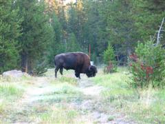 A Bison in Canyon Village at 6 am.