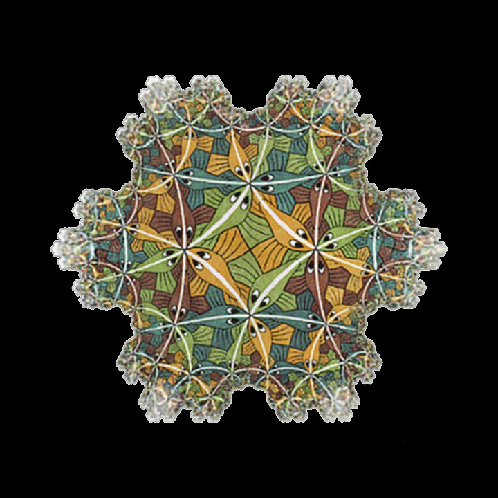 ![]() Above is an Escher tessellation which has been conformally mapped to the Koch snowflake. |
