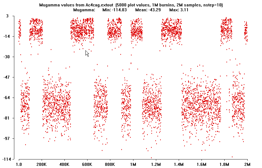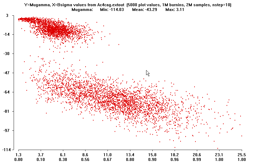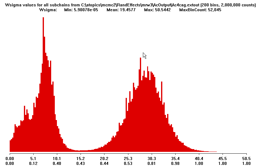 The three main parameters have a TRIMODAL distribution in the full run: