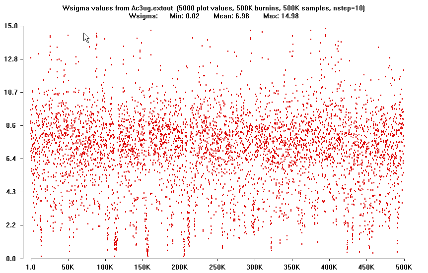 The following are plots using 5000 values from runs of a